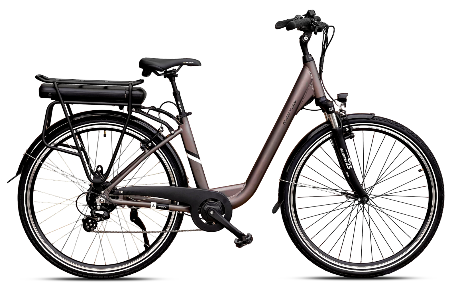 Rower elektryczny na kołach 28" Barton E-city model z kolekcji 2026 w kolorze brązowym