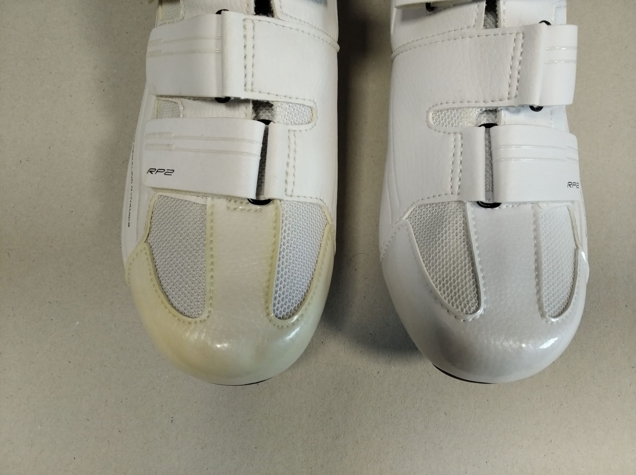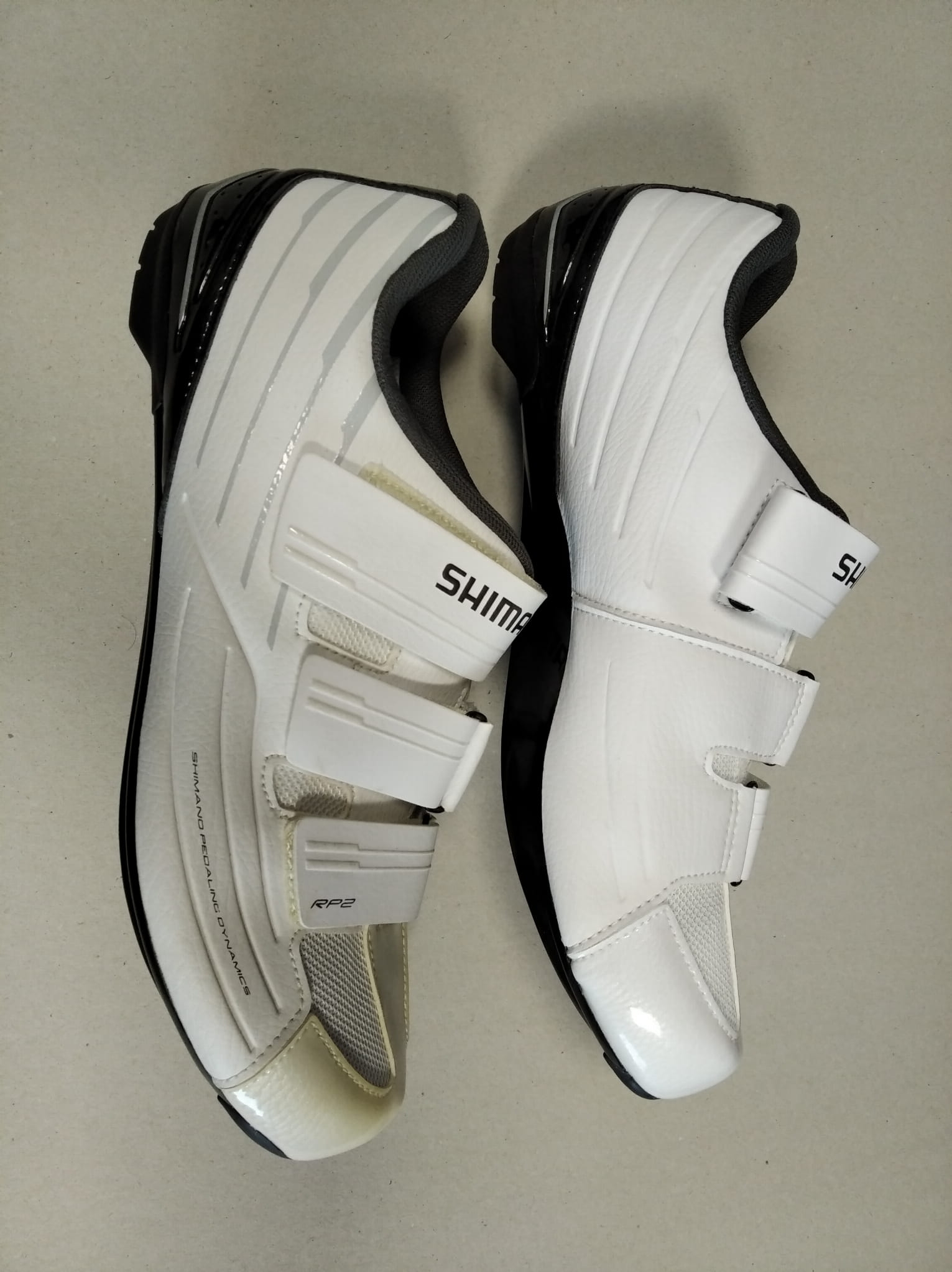 Wygodny but dla początkujących. Podstawowy but wyczynowy dla początkujących entuzjastów wyścigów.Shimano RP2 dla wszystkich, którzy chcę zacząć profesionalną jazdę na rowerze. Jest to model stworzony do wyczynowej jazdy. Bardzo dobry model na pierwsze zawody i długie treningi. Zapinany na 3 rzepy, gwarantuje bardzo dobre dopasowanie i rozłożenia napięcia na górnej części stopy. Język buta została wzbogacony o dodatkową wyściółkę, która zapewnia optymalną wygodę. Podeszwa została wykonana nylonu wzmocniona włóknem szklanym.