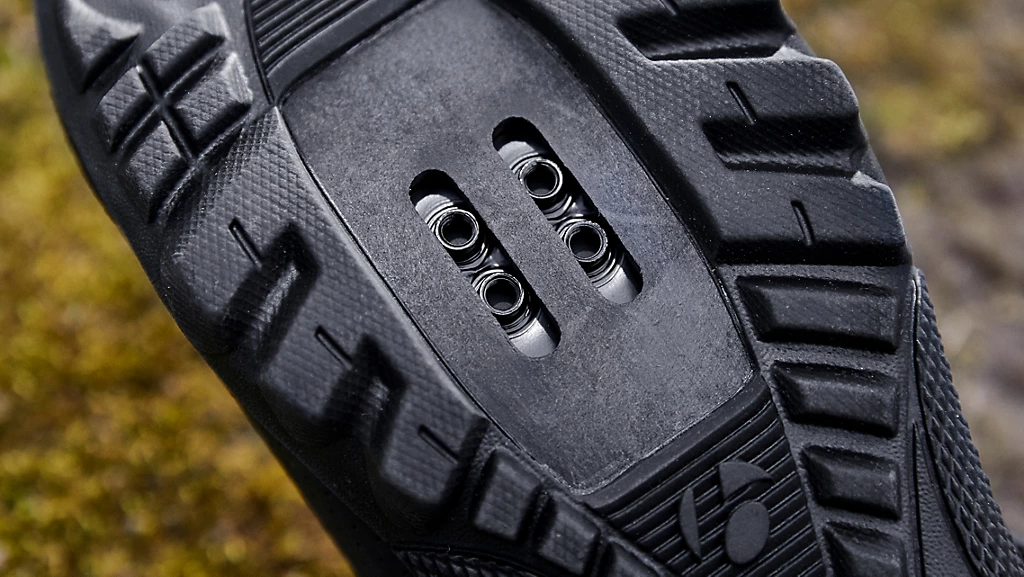 - Buty zgodne są z blokami SPD na 2 wkręty, a wskaźniki montażowe ułatwiają właściwe zamontowanie i ułożenie bloków