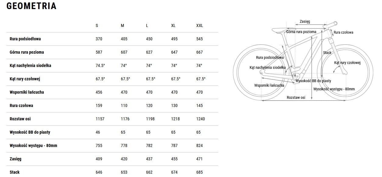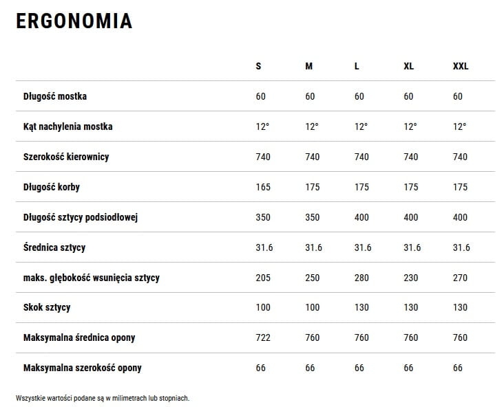 Dostępne rozmiary ramy: M, L, XL