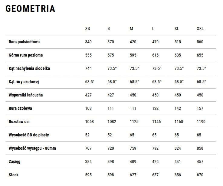 Dostępne rozmiary ramy: M oraz XL
