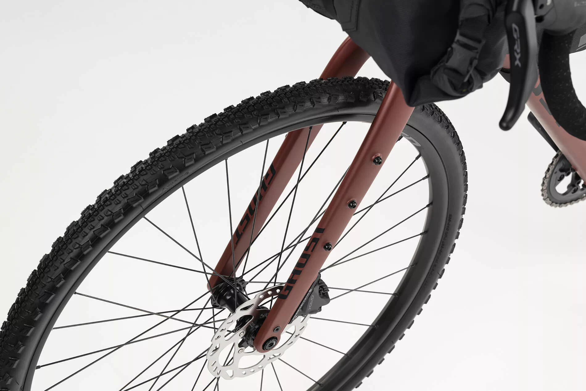 Dzięki pełnemu wyposażeniu z solidnymi torbami na siodło, ramę i kierownicę nic nie stoi na przeszkodzie Twojej Gravelowej przygodzie.