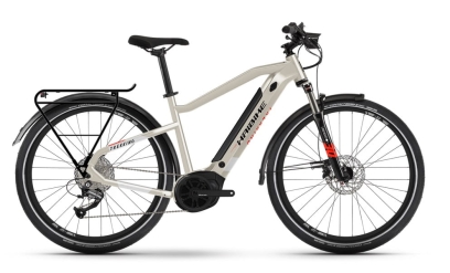 Rower elektryczny trekkingowy HAIBIKE TREKKING 4 i500Wh w kolorze piaskowo-białym.