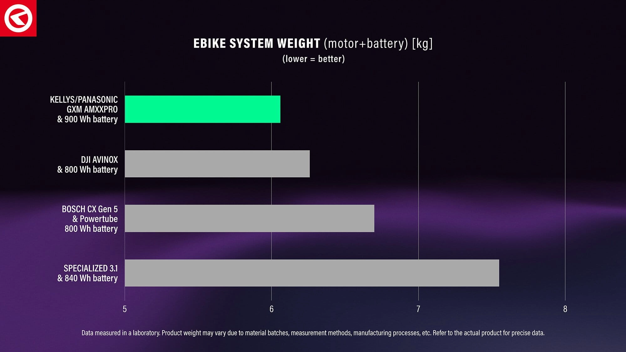 Karbonowe akumulatory KELLYS K2 MAXXPRO ważą do 3,5 kg i są dostępne w wersjach 900 Wh, 820 Wh oraz 725 Wh. Przy gęstości energetycznej aż 257 Wh/kg są nawet o 20% lżejsze od rozwiązań konkurencji, oferując jednocześnie większą pojemność.