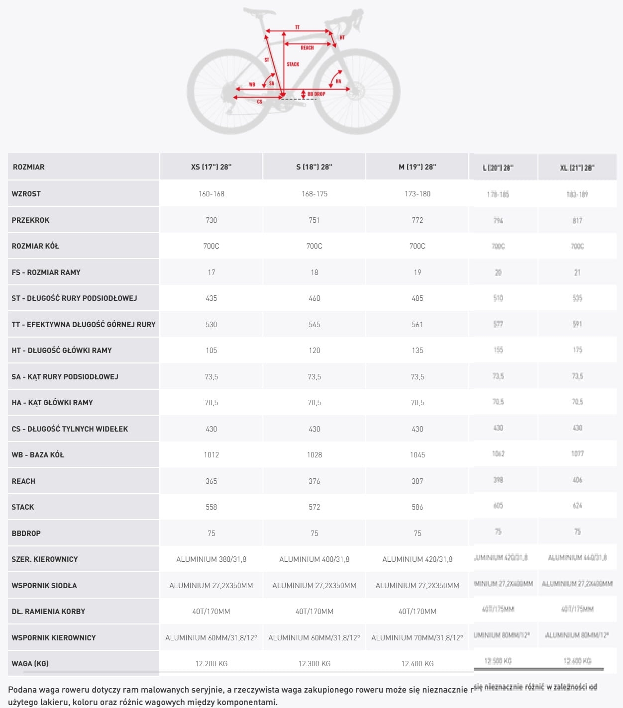 Dostępne wielkości ramy : XS, S, M, L oraz XL