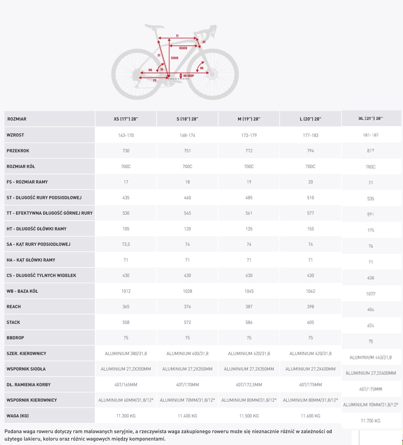 Dostępny rozmiar ramy: XS, S, M, L oraz XL