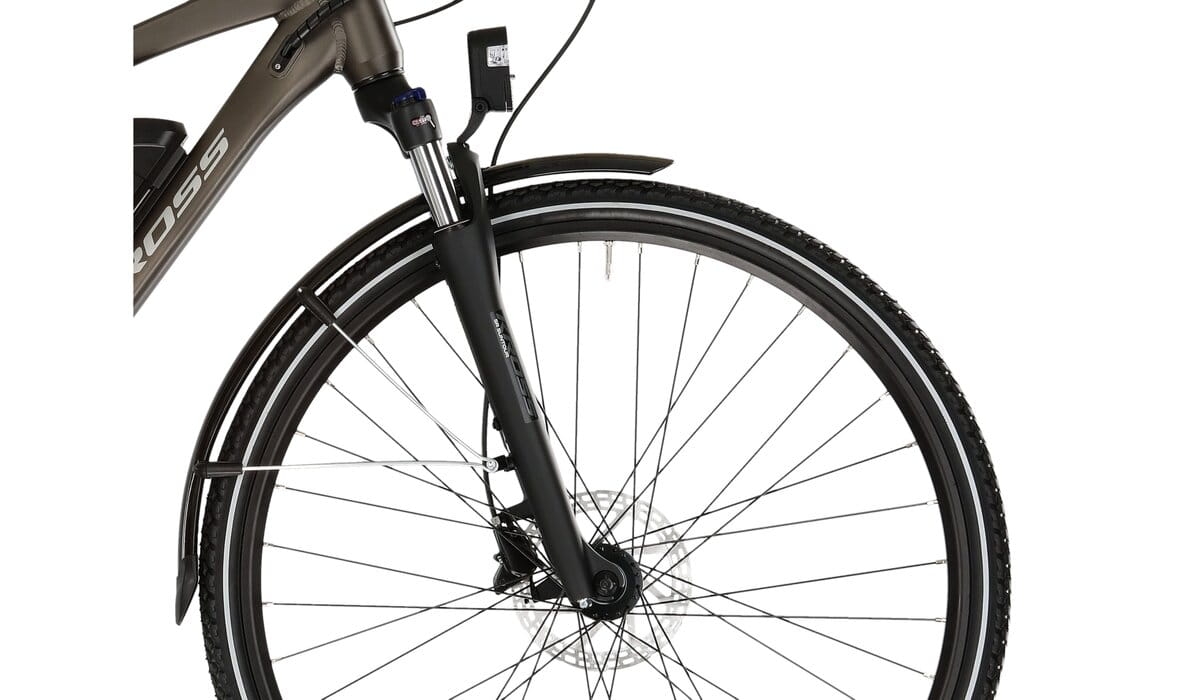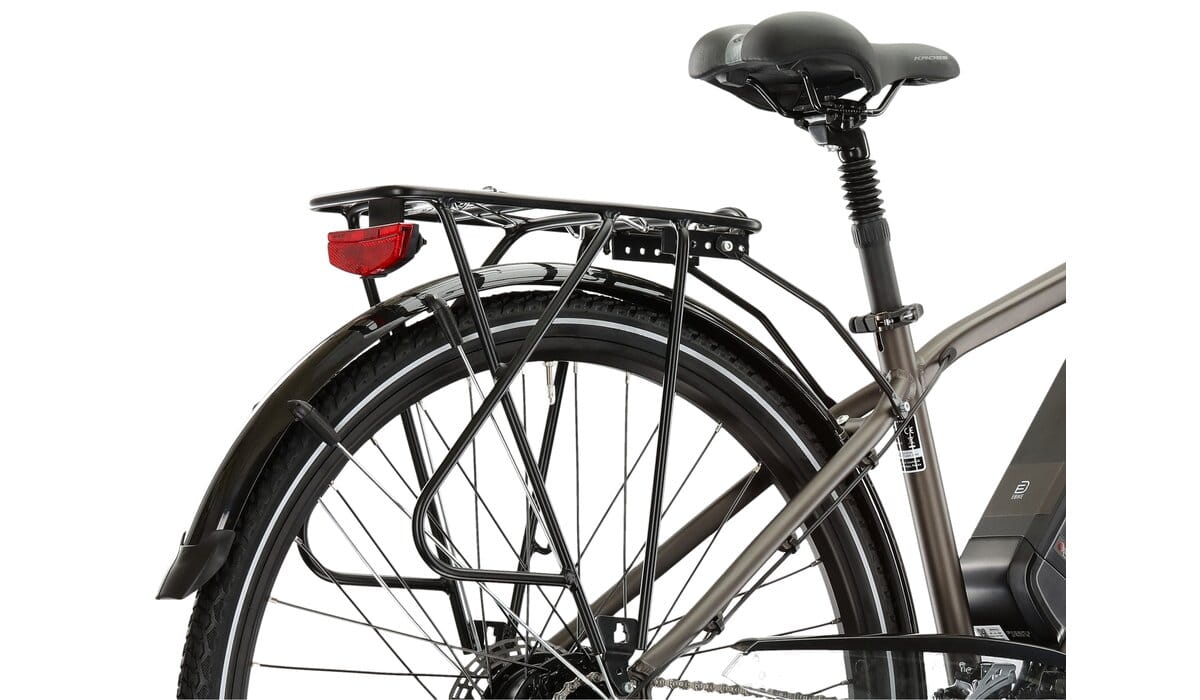 E-bike KROSS Trans Hybrid został stworzony z myślą o wygodzie. Dlatego jego rama została wykonana z aluminium performanceStop Aluminium Performance 6061 to wysoka sztywność i odporność na złamania, a zarazem lekkość typową dla aluminium., które jest doskonałym połączeniem niskiej wagi oraz sztywności i odporności na uszkodzenia. Wyposażyliśmy go także w zwiększający komfort podczas jazdy po korzeniach ,czy nierównościach na drodze amortyzator SR Suntour Nex o skoku 63 milimetry. Całość uzupełniają też liczne akcesoria, których zadaniem jest zwiększenie możliwości roweru. Dlatego wyposażyliśmy go w bagażnik umożliwiający montaż sakw. Posiada także wygodną stopkę umożliwiającą postawienie roweru bez opierania go o ścianę oraz oświetlenie.