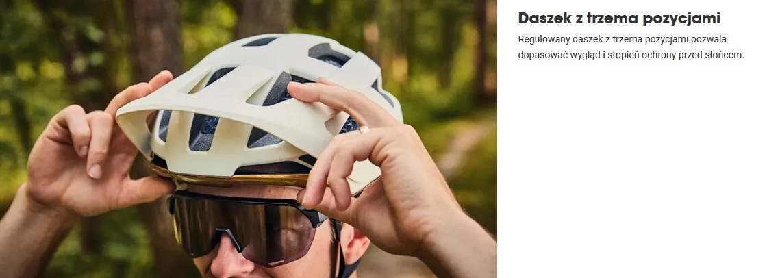 Przystosowany do gogli daszek z trzema pozycjami z wbudowanym miejscem na okulary przeciwsłoneczne