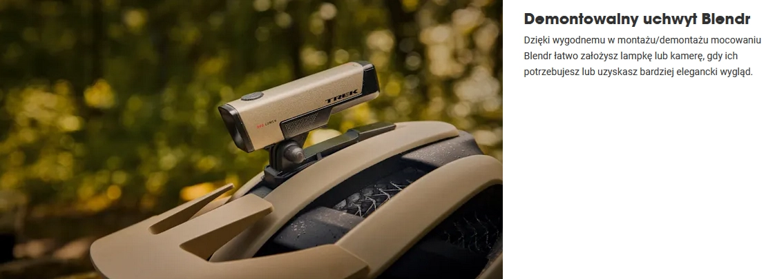 Demontowalny magnetyczny system mocowania Blendr umożliwia łatwy montaż kamery GoPro i lampek Trek