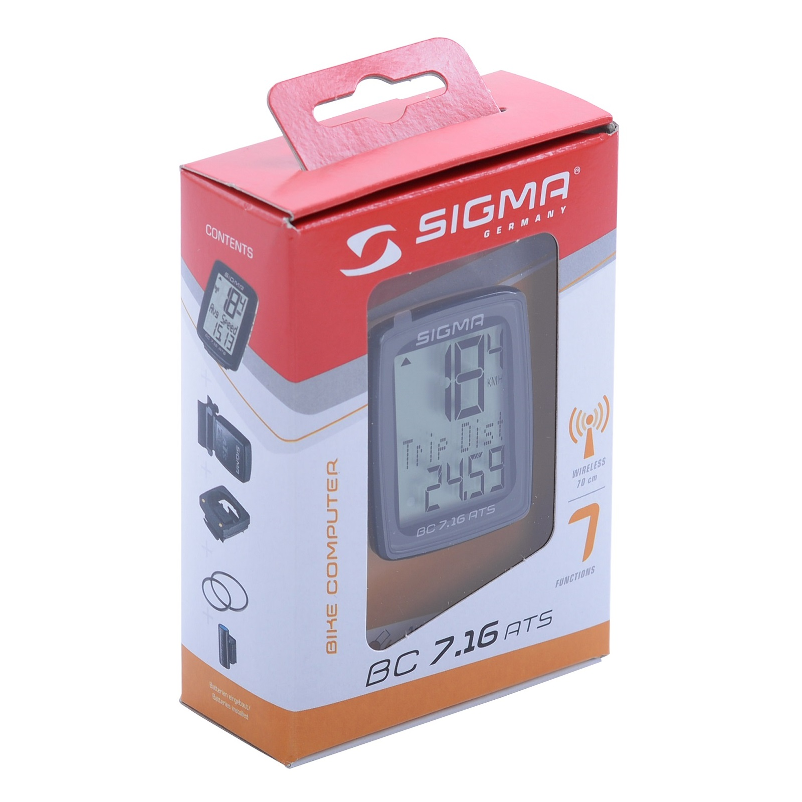 Sigma BC 7.16 ATS to bezprzewodowy licznik rowerowy dla początkujących z wszechstronnymi funkcjami rowerowymi. Szybki w montażu, łatwy do ustawienia. Nieskomplikowany, trzyrzędowy wyświetlacz z pełnym tekstem. Łatwy w obsłudze dzięki jednemu przyciskowi. Cztery funkcje rowerowe oraz trzy funkcje czasu.