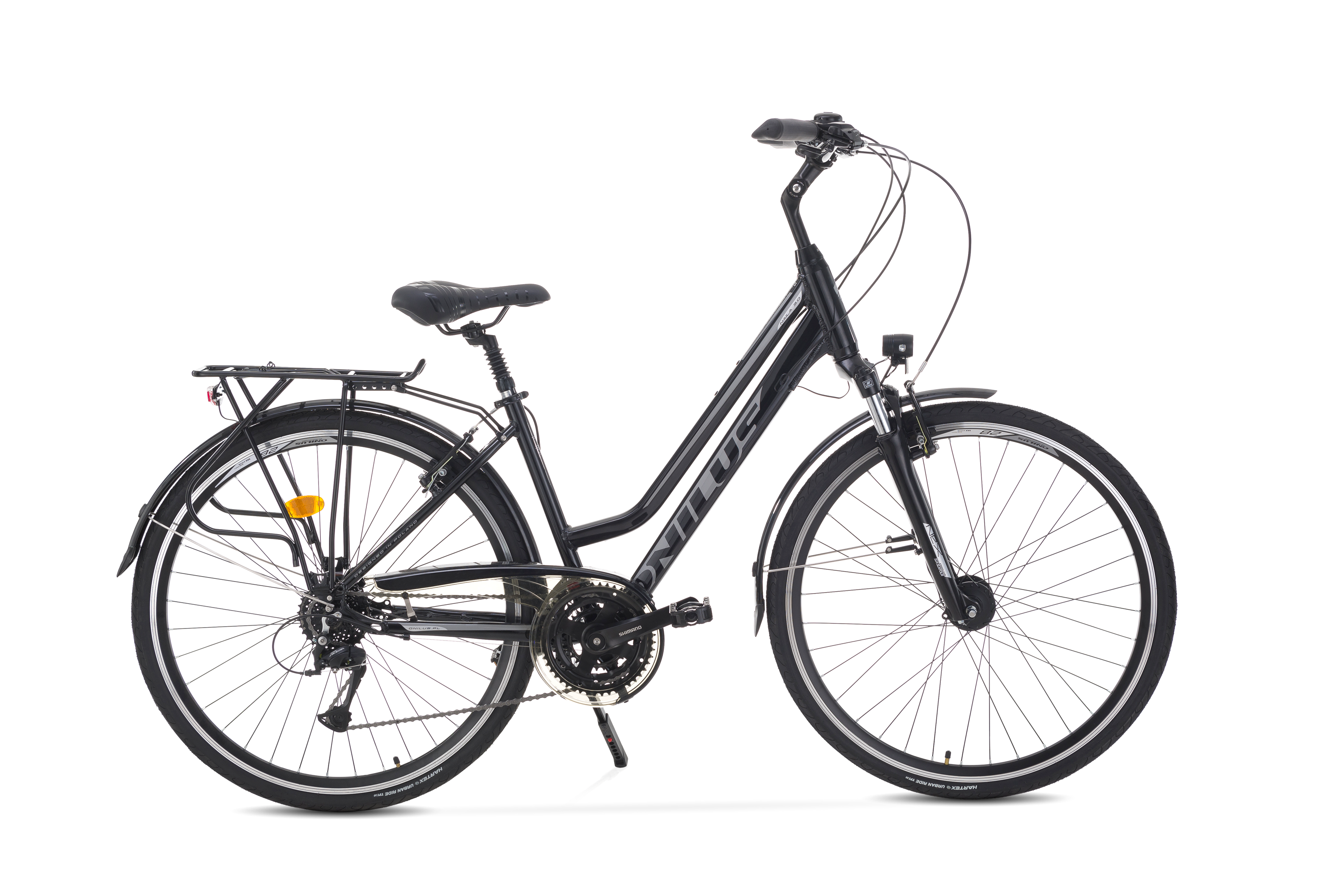 Rower trekkingowy damski na kołach 28" ONILUS NAILA 3.0 w kolorze czarnym.