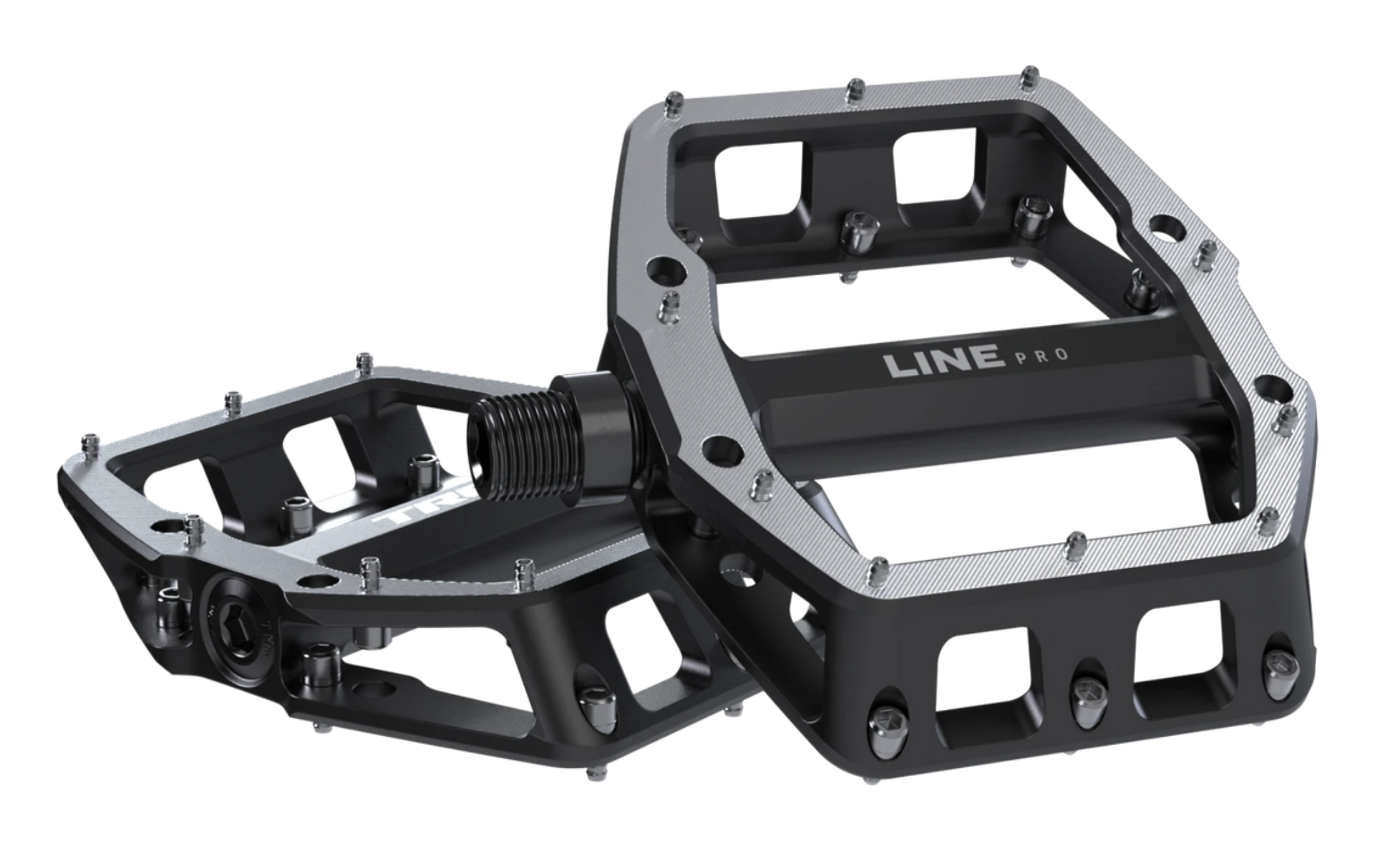 Pedały platformowe Line Pro dzięki wklęsłemu korpusowi i solidnej platformie z pinami zapobiegają ślizganiu się butów. Możesz podnieść but w dowolnym momencie, a potem wrócić na pedał i cisnąć bez obaw o trzymanie.