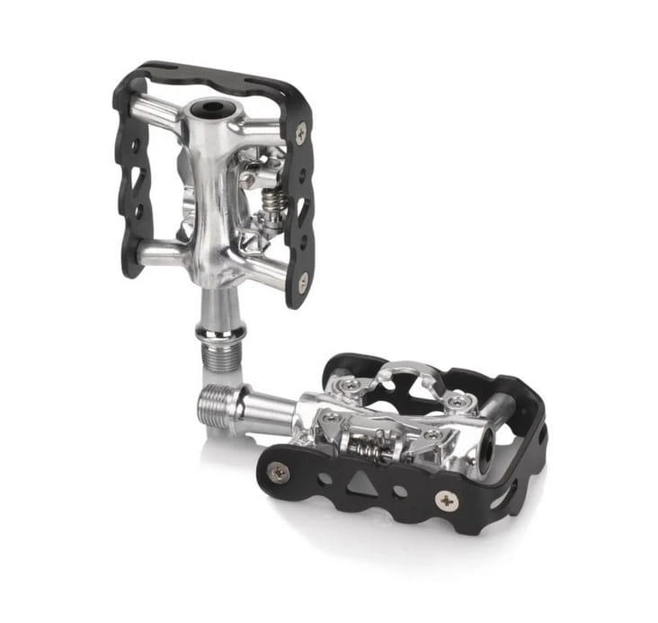 Lekkie pedały platformowe marki XLC, kompatybilne z systemem SPD.