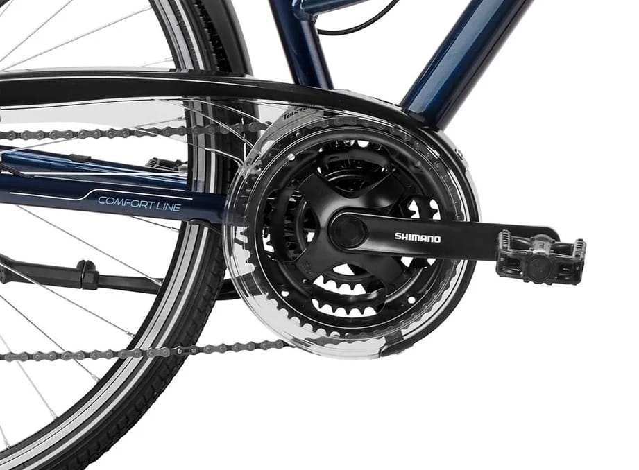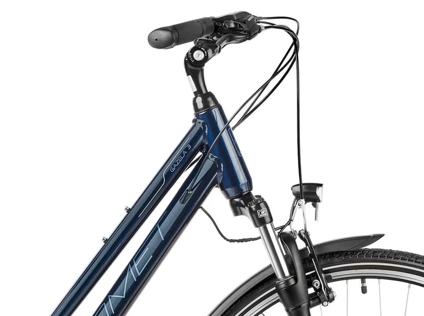 Gazela 3 jest modelem trekkingowym bez kompromisów. To solidna maszyna, której specyfikacja jest kompletna. Dzięki amortyzatorowi przedniemu SR Suntour M3010 i amortyzowanej sztycy jazda nawet po wyboistej trasie jest wyjątkowo komfortowa. Pozycja na rowerze jest komfortowa, a jej ustawienie ułatwia regulowany wspornik kierownicy. Gwarancją płynności jazdy jest napęd legendarnej marki Shimano. Grupa Shimano Acera oferująca 21 biegów to pewność działania i szeroki zakres przełożeń. Ma to kluczowe znaczenie zwłaszcza kiedy teren zacznie robić się trudniejszy i pojawią się pierwsze wzniesienia, które trzeba pokonać. W specyfikacji modelu znajdziemy również mnóstwo dodatków przydatnych w codziennej eksploatacji jak i podczas ambitniejszych dystansów. Solidny bagażnik zdolny przewieżć naprawdę dużo, komplet błotników wraz z przednim i tylnym oświetleniem. Model wyposażony został również w stopkę, która ułatwi postoje i odpoczynek. Gazela 3 występuje w 2 rozmiarach ramy oraz w 2 wersjach kolorystycznych.