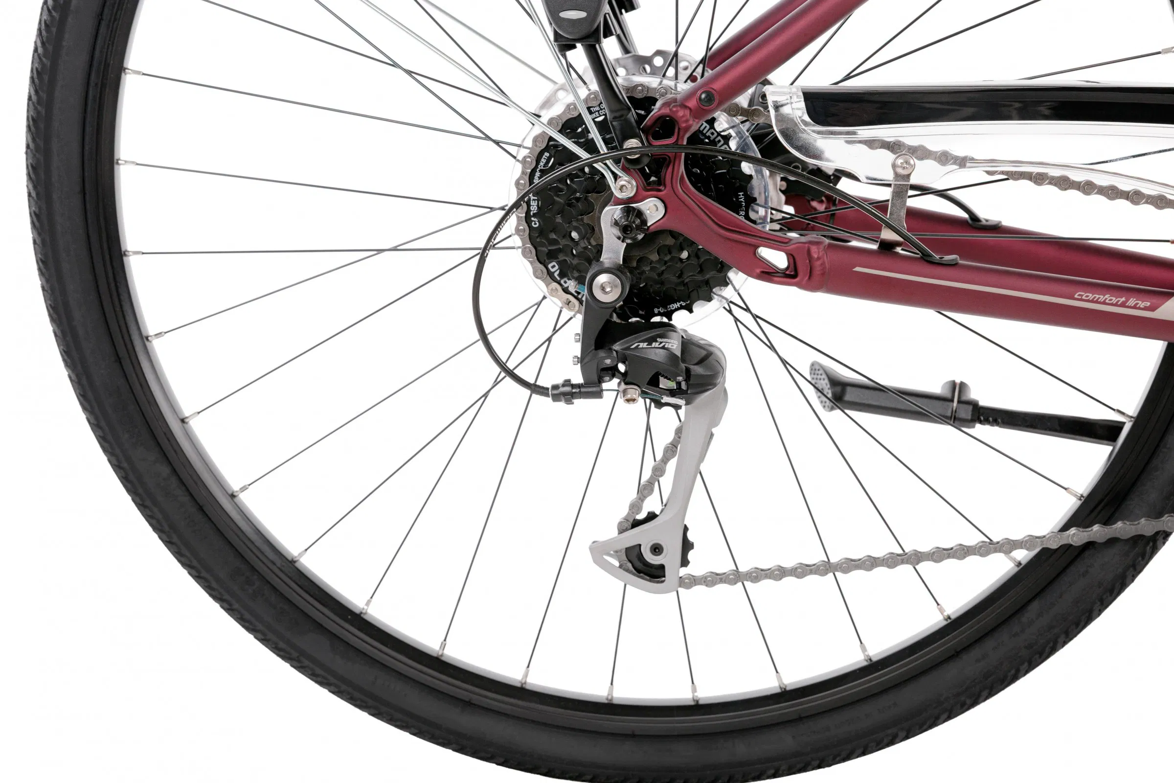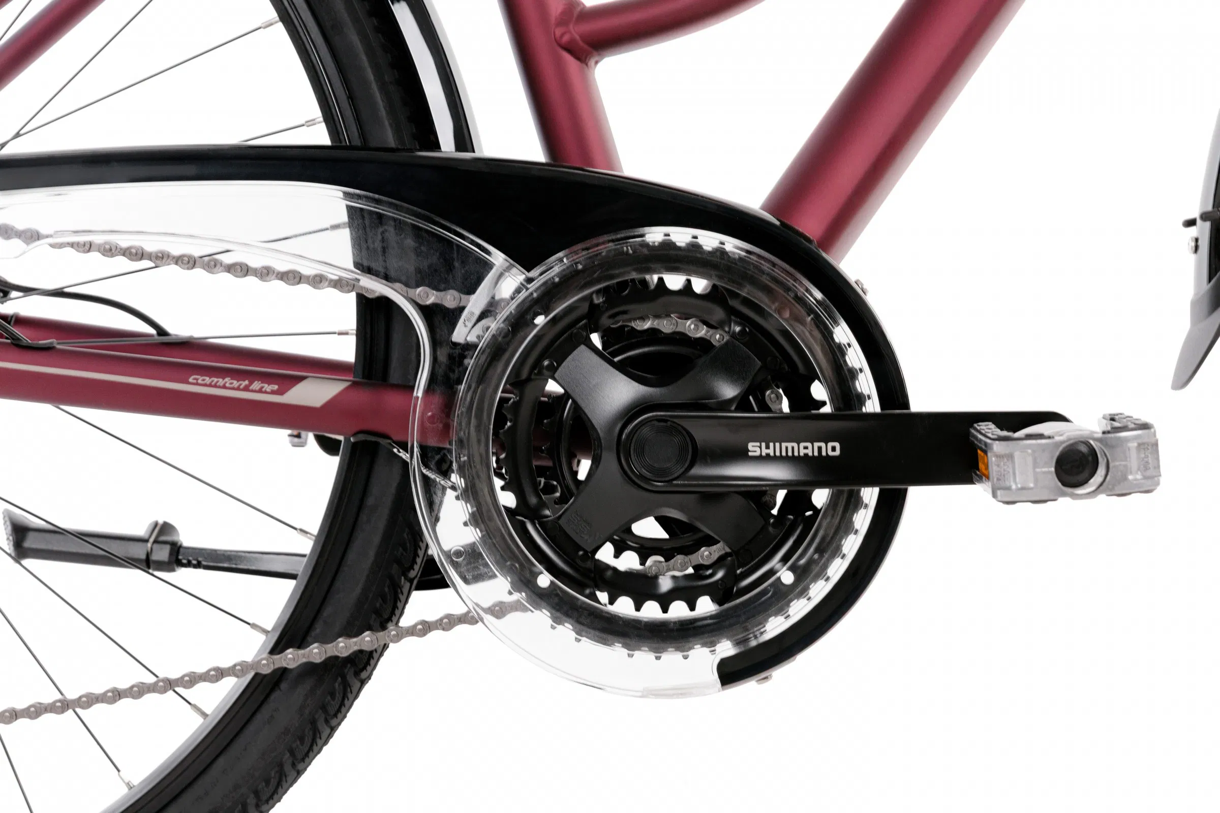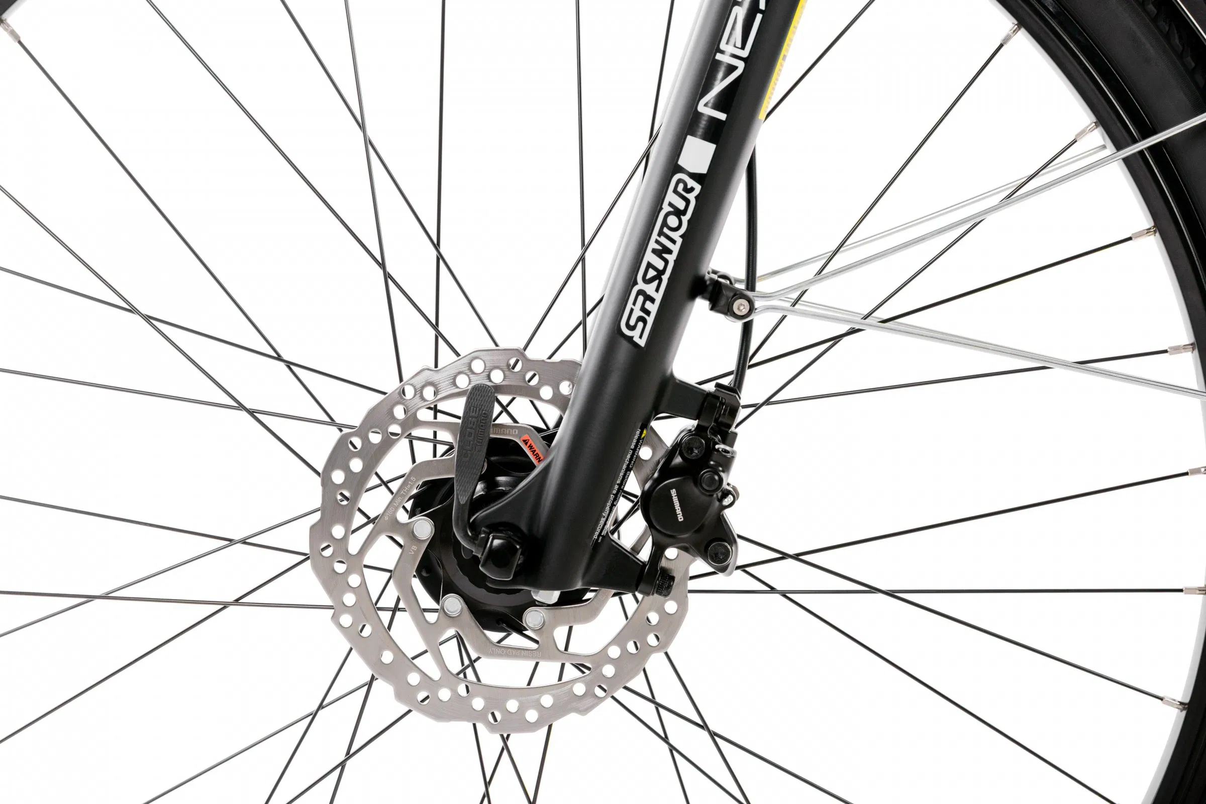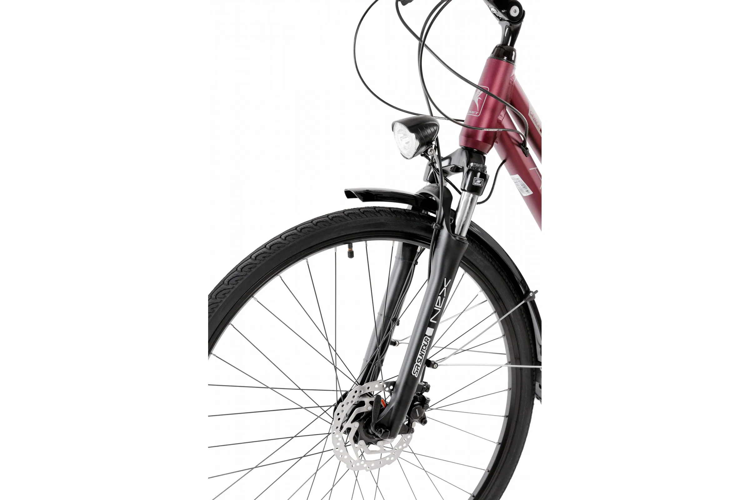 Jak coś jest do wszystkiego to jest do niczego. Z pewnością nie w tym przypadku. Gazela to doskonały kompan na długie jak i krótkie podróże. Posiada widelec amortyzowany SR Suntour NEX DJ oraz amortyzowaną sztycę, które zdecydowanie podnoszą poziom komfortu każdej przejażdżki. W Gazeli mamy do wykorzystania 24 przełożenis za sprawą napędu Shimano Alivio. Gwarantuje on płynną zmianę przełożeń oraz niezawodność. Nieważne jaka jest pogoda, bezpieczeństwa w czasie jazdy będą strzec hamulce tarczowe Shimano, podobnie jak oświetlenie, które zapewni doskonałą widoczność. Oświetli również drogę, jeśli trzeba będzie jechać po zmroku. Gazelę wyposażyliśmy w błotniki oraz osłonę napędu, które będą niezwykle przydatne w czasie jazdy przy gorszej pogodzie. W seryjnej specyfikacji warty podkreślenia jest regulowany wspornik kierownicy, który pozwoli w prosty sposób dobrać wygodną pozycję.