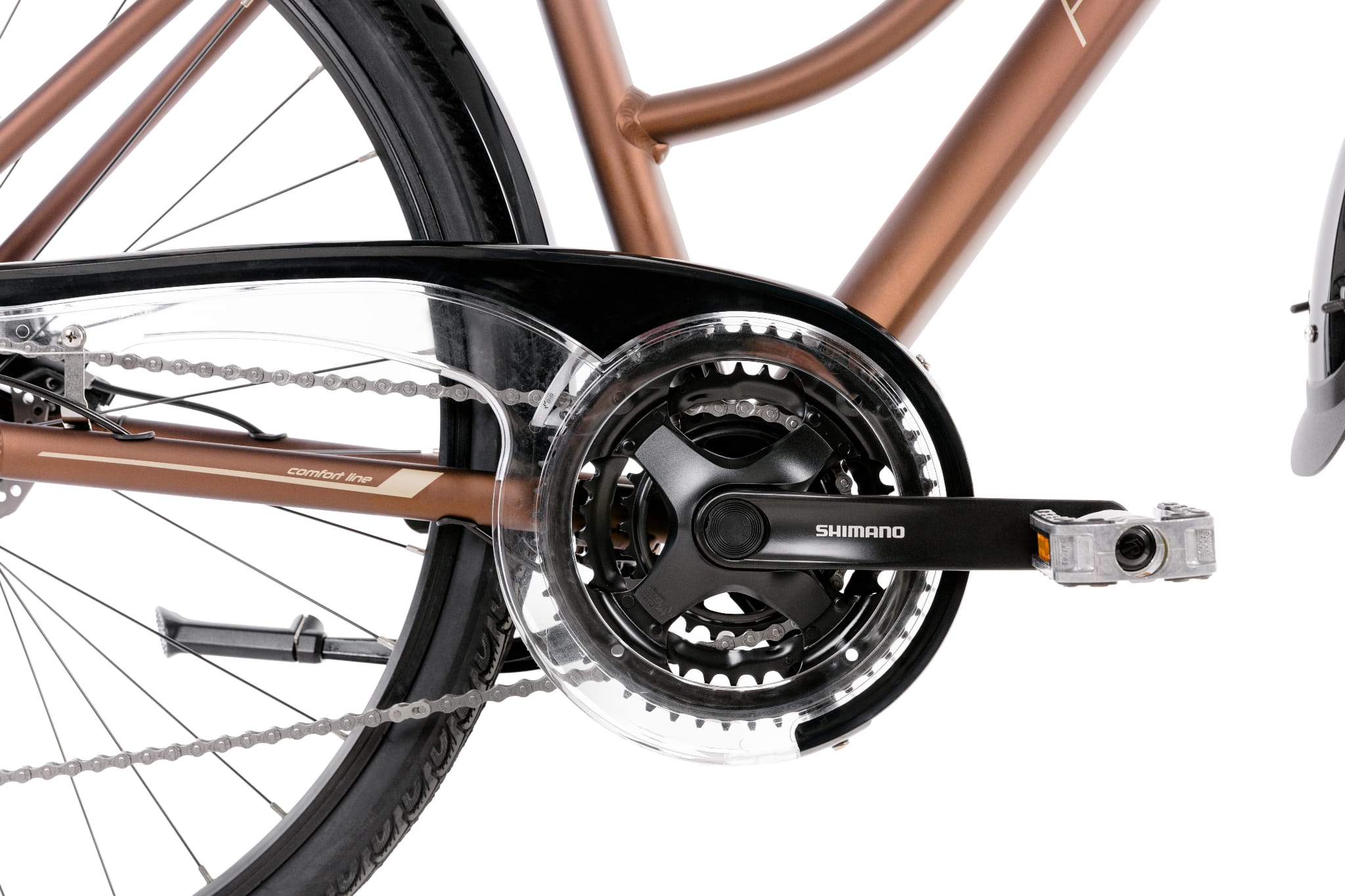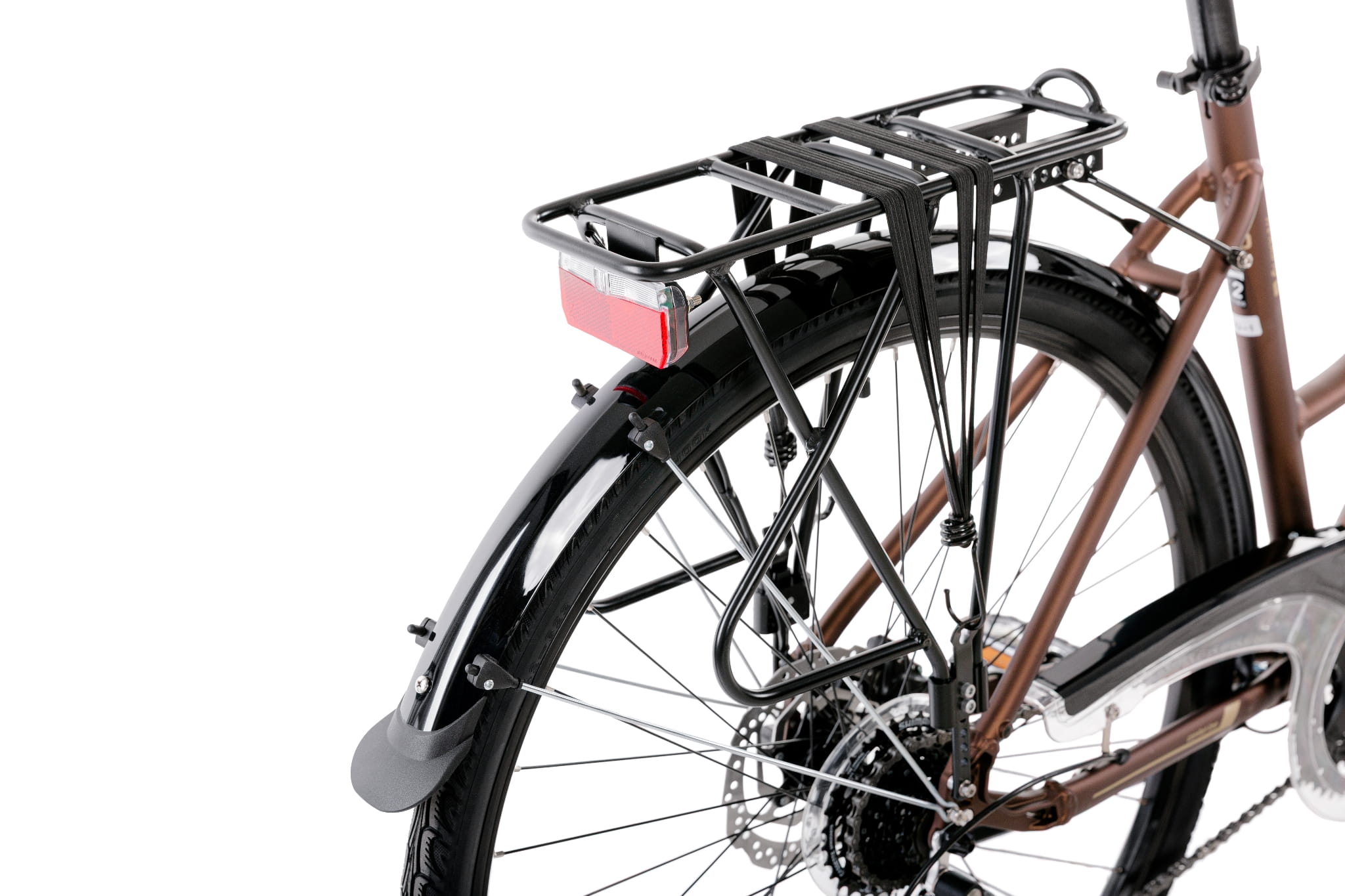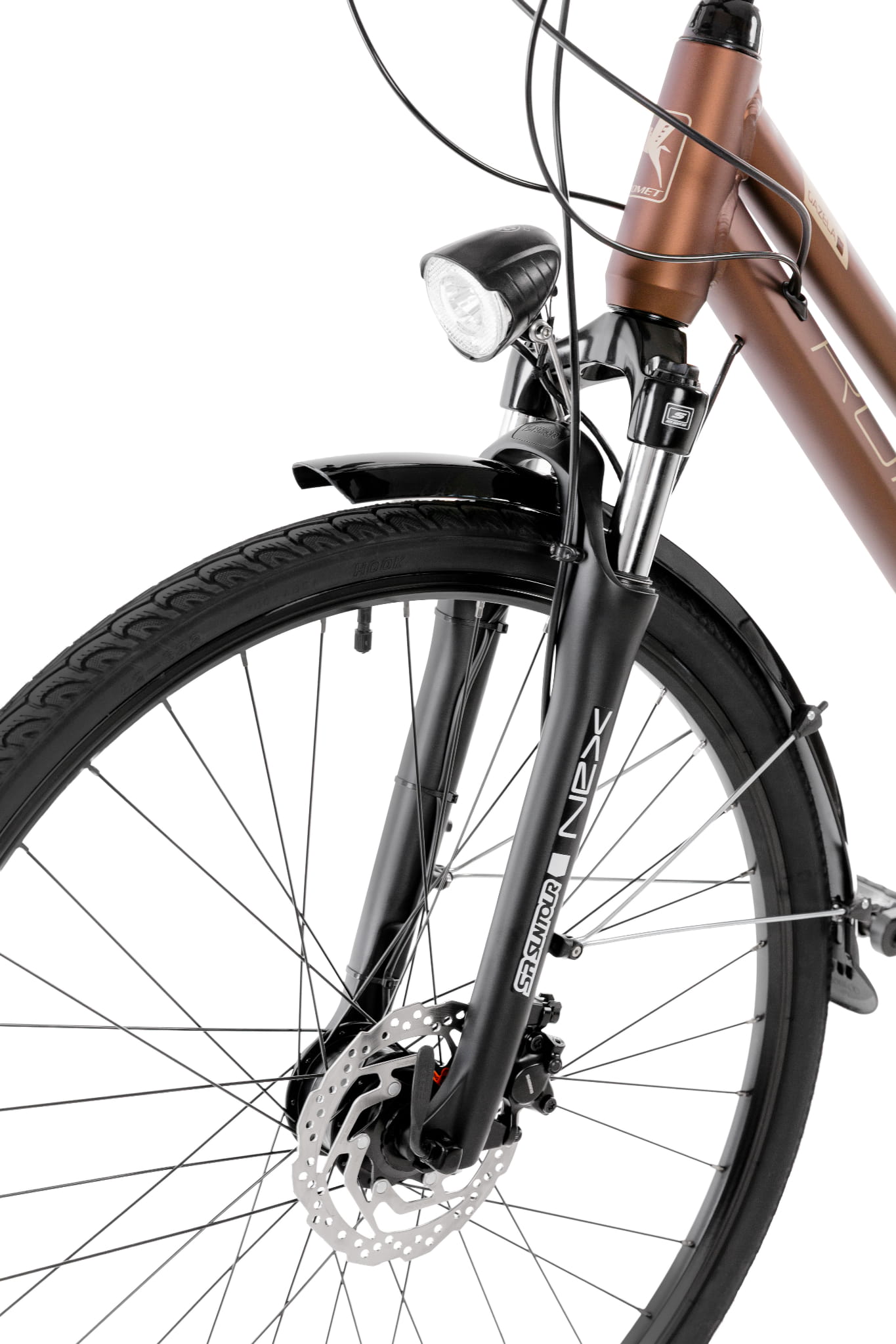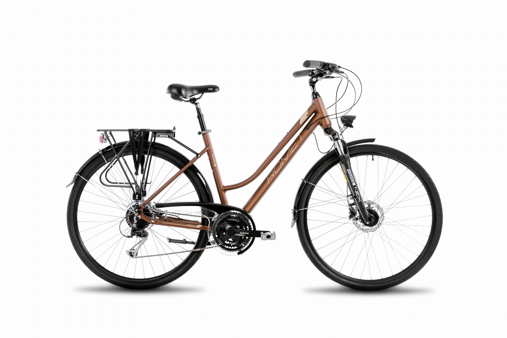 Jak coś jest do wszystkiego to jest do niczego. Z pewnością nie w tym przypadku. Gazela to doskonały kompan na długie jak i krótkie podróże. Posiada widelec amortyzowany SR Suntour NEX DJ oraz amortyzowaną sztycę, które zdecydowanie podnoszą poziom komfortu każdej przejażdżki. W Gazeli mamy do wykorzystania 24 przełożenis za sprawą napędu Shimano Alivio. Gwarantuje on płynną zmianę przełożeń oraz niezawodność. Nieważne jaka jest pogoda, bezpieczeństwa w czasie jazdy będą strzec hamulce tarczowe Shimano, podobnie jak oświetlenie, które zapewni doskonałą widoczność. Oświetli również drogę, jeśli trzeba będzie jechać po zmroku. Gazelę wyposażyliśmy w błotniki oraz osłonę napędu, które będą niezwykle przydatne w czasie jazdy przy gorszej pogodzie. W seryjnej specyfikacji warty podkreślenia jest regulowany wspornik kierownicy, który pozwoli w prosty sposób dobrać wygodną pozycję.