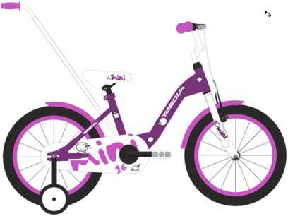 Mini to model występujący w rozmiarze kół: 12/14/16/18/20”, stąd możliwość doboru właściwego rowerka dla dzieci w wieku 2-8 lat.