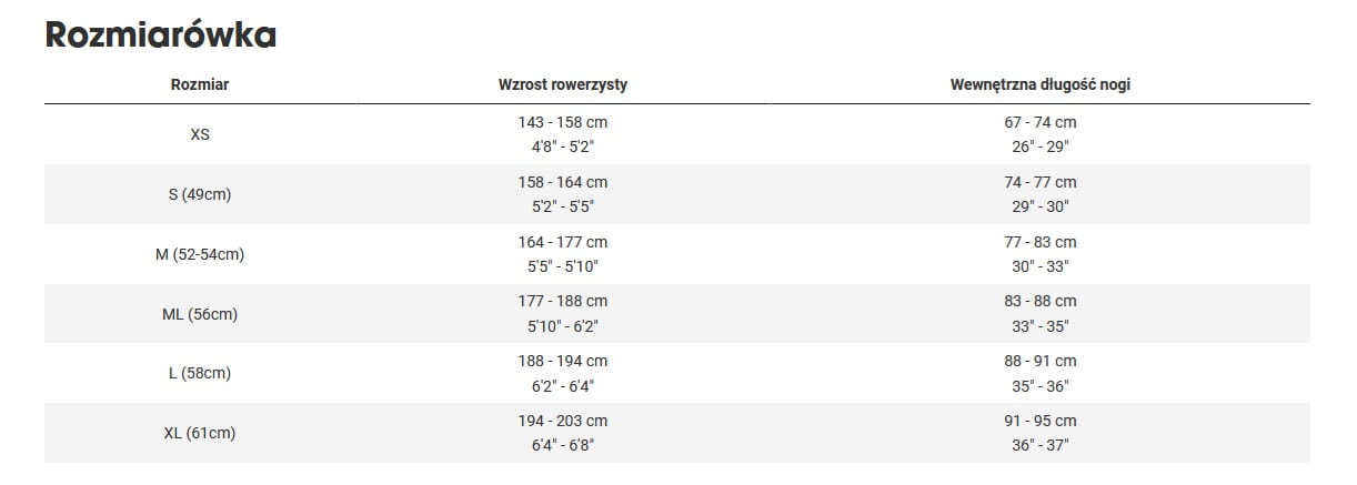 Odświeżyliśmy rozmiarówkę, aby dopasować ją do jeszcze szerszej gamy rowerzystów, jednocześnie zmniejszając liczbę i ograniczając nakładanie się rozmiarów, aby ułatwić znalezienie tego odpowiedniego.