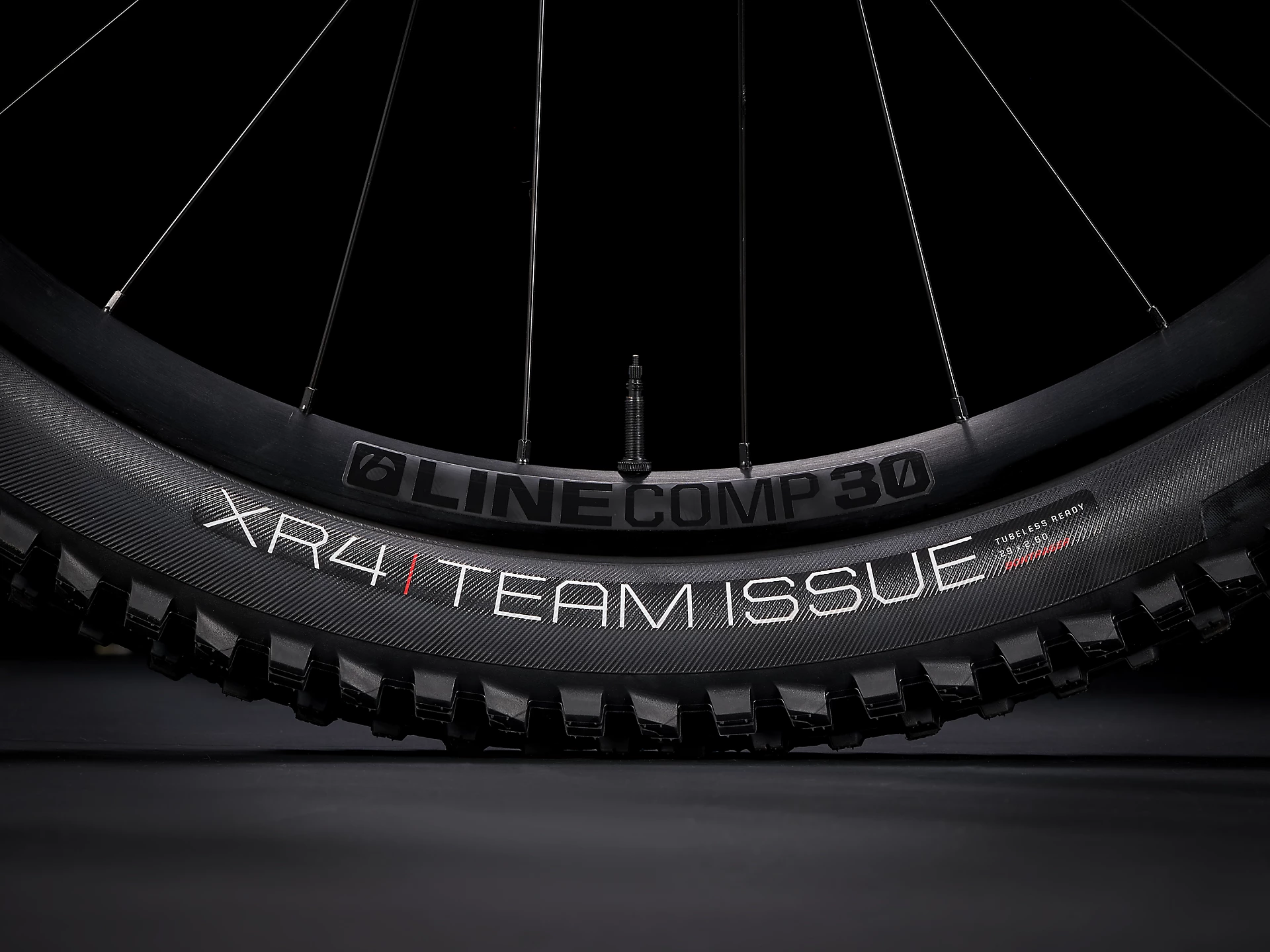 | Opona | Rozmiar: XS , S , M , ML , L , XL , XXL Bontrager XR4 Team Issue, przystosowana do zastosowania bezdętkowego Tubeless Ready, ściany boczne Inner Strength, stopka z aramidu, 120 tpi, 29 x 2,40” |
