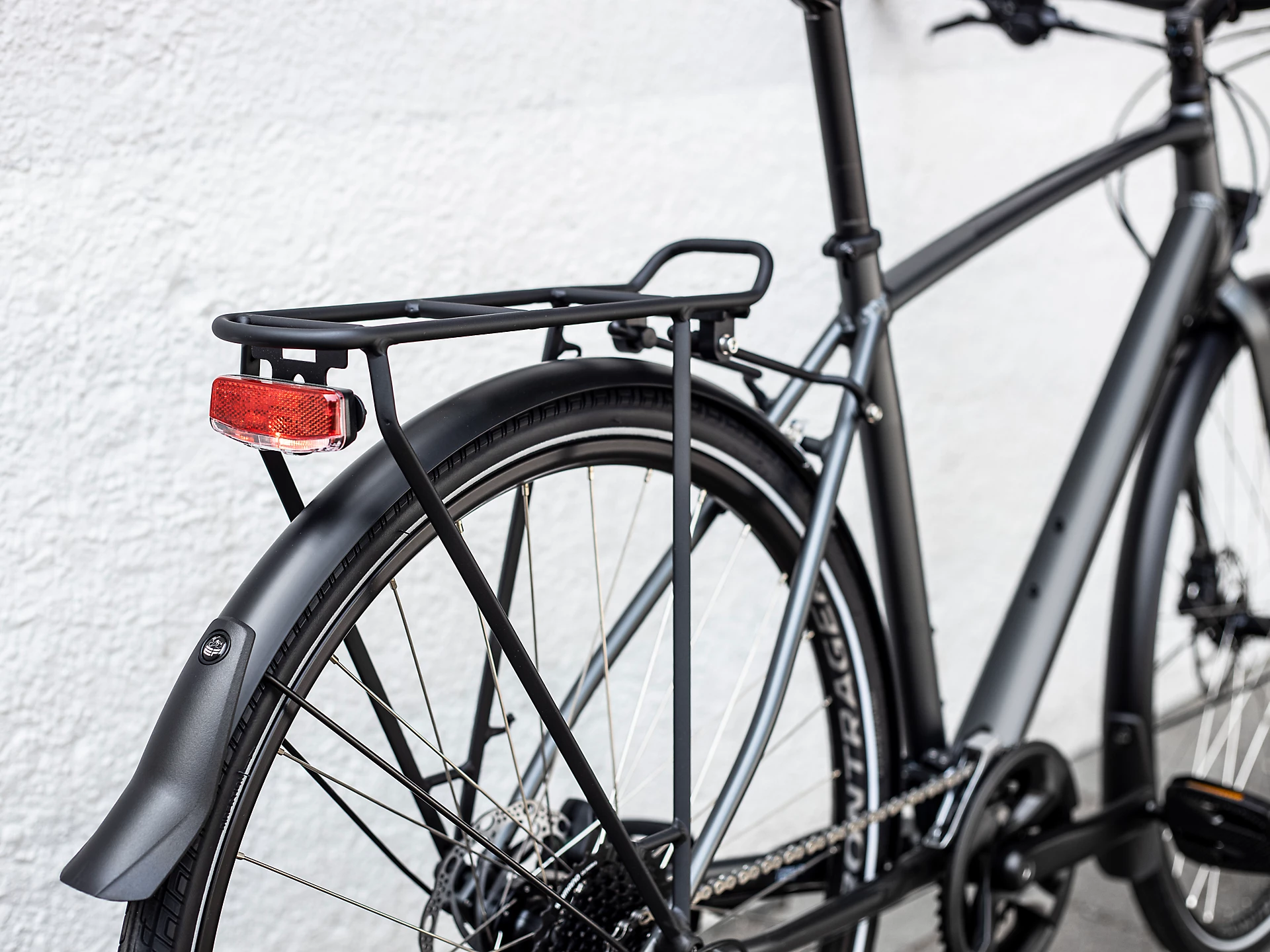- Dzięki dołączonym akcesoriom, takim jak błotniki, lampki, bagażnik tylny i nóżka, rower jest od razu gotowy do jazdy