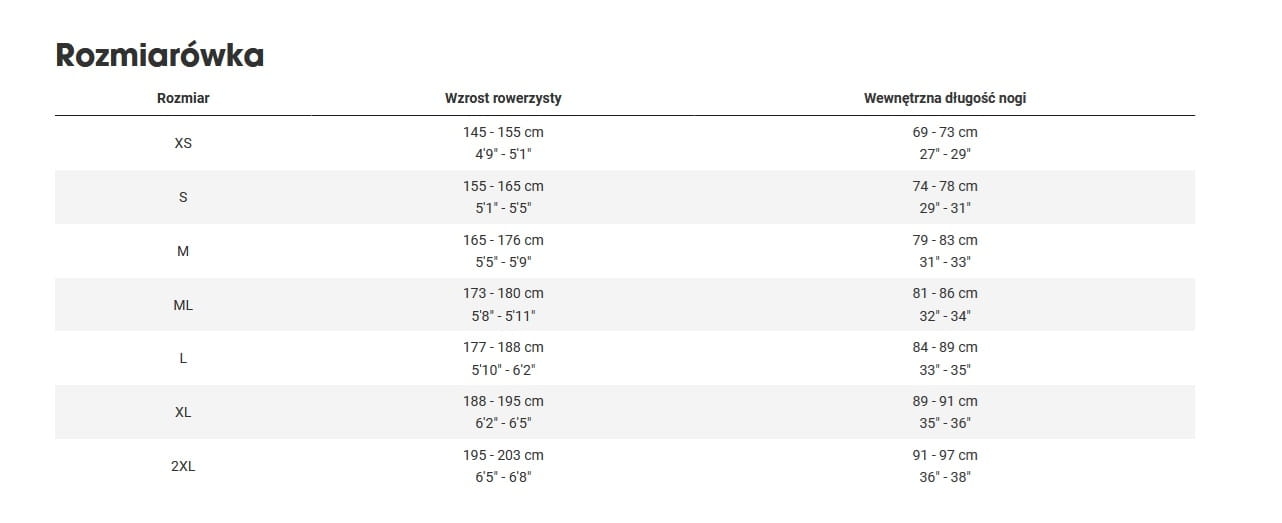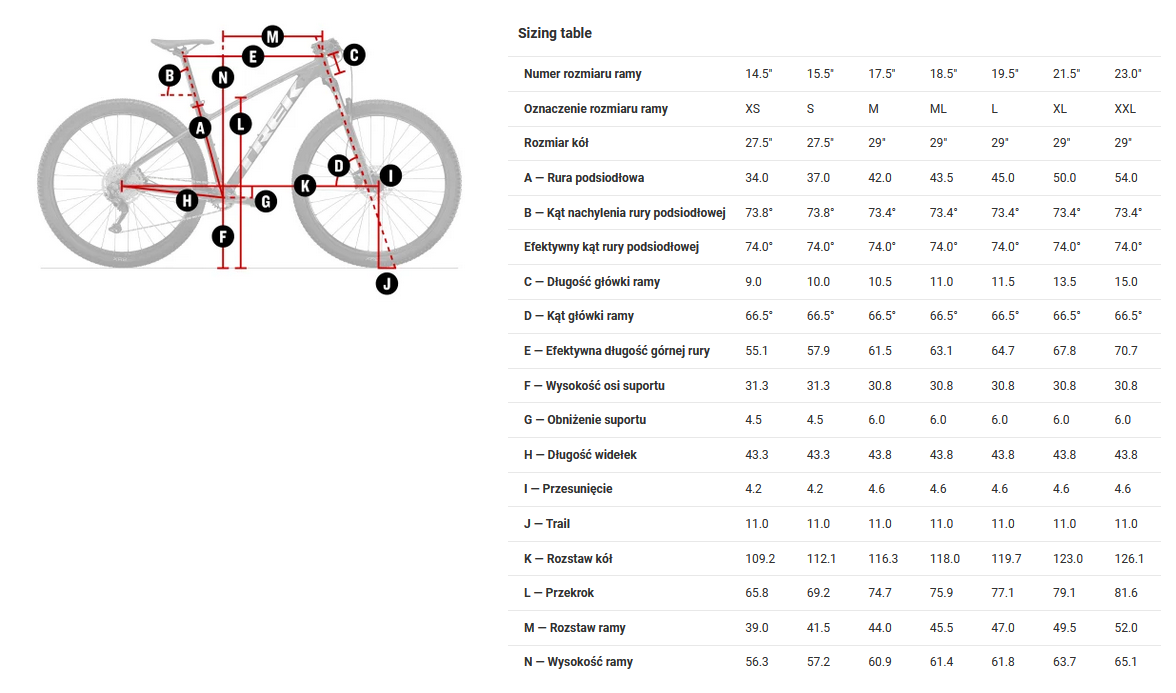 Dostępne wielkości ramy:  M/L-18,5", L-19,5"  XL-21,5" oraz XXL-23,5" (koła 29")