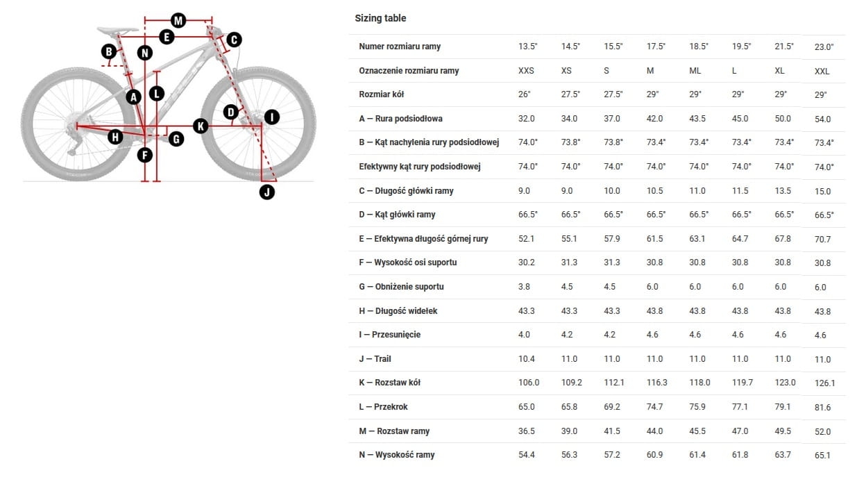 | Rozmiar tarczy | Maks. średnice tarcz hamulcowych - Rama: 180mm (XXS: 160mm), Widelec: zgodnie ze specyfikacją producenta widelca |