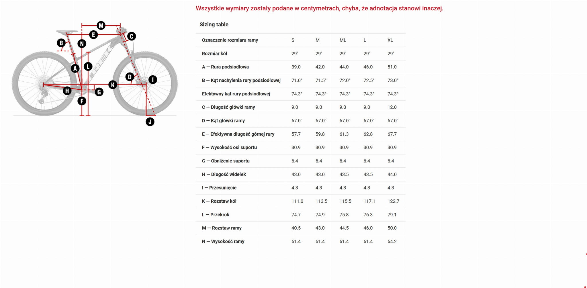 Uwaga – jeśli nie podano inaczej, specyfikacja dotyczy wszystkich rozmiarów