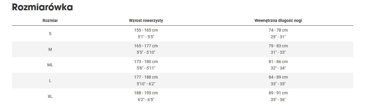 Masy rowerów i ram zostały podane dla pomalowanych ram w wersji przedprodukcyjnej w momencie publikacji. Masy w finalnej wersji produkcyjnej mogą się różnić.