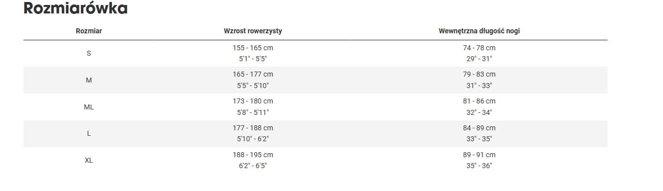 Dostępny rozmiar ramy: M, M/L, L oraz XL