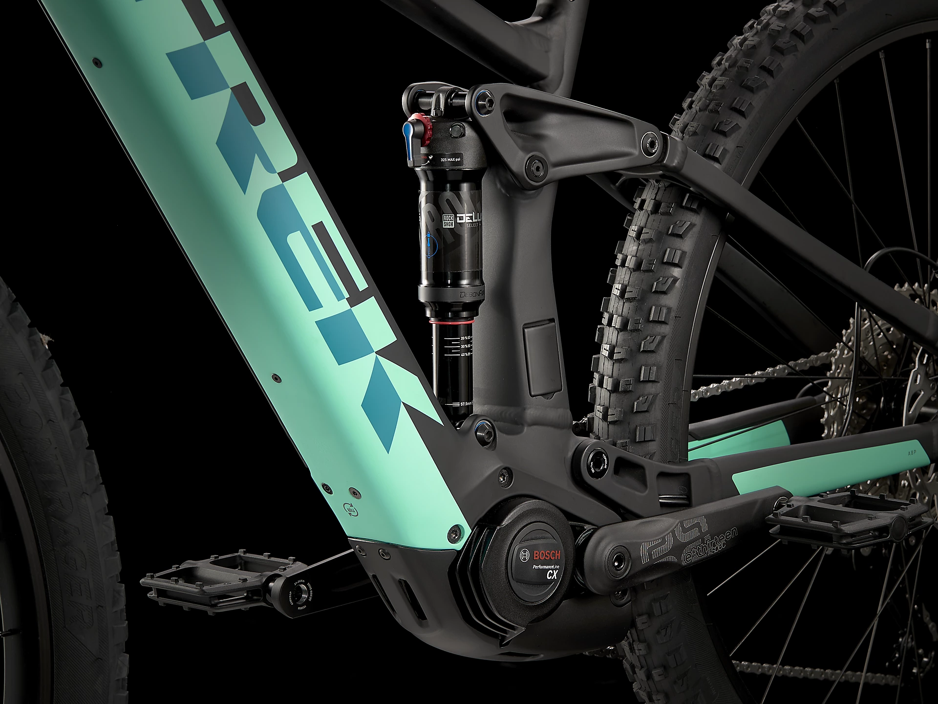 - System ze Zintegrowanym wymiennym akumulatorem Trek RIB (z ang. Removable Integrated Battery) wygląda świetnie i jest wyjątkowo przyjazny dla użytkownika: osłonięty dzięki pełnemu wbudowaniu w ramie, można go z łatwością wyjąć bez użycia narzędzi, a dodatkowo umożliwia montaż koszyka na bidon