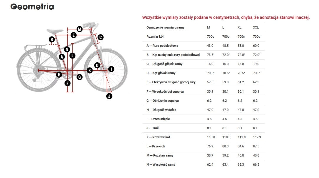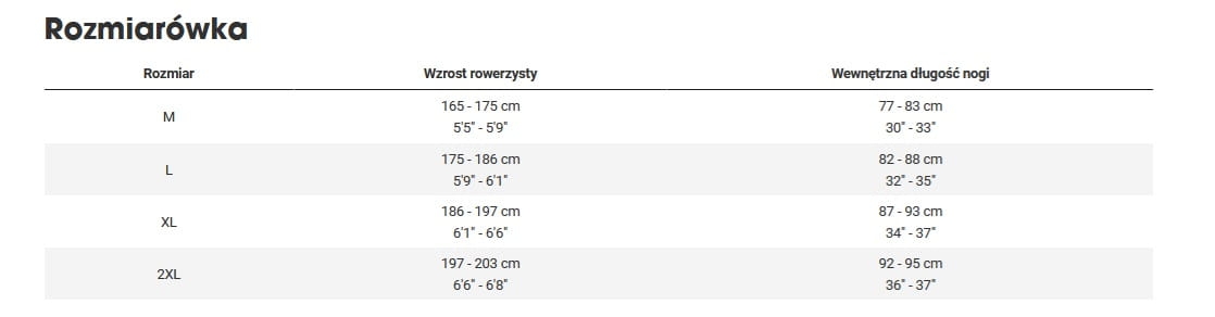 * Uwaga – jeśli nie podano inaczej, specyfikacja dotyczy wszystkich rozmiarów